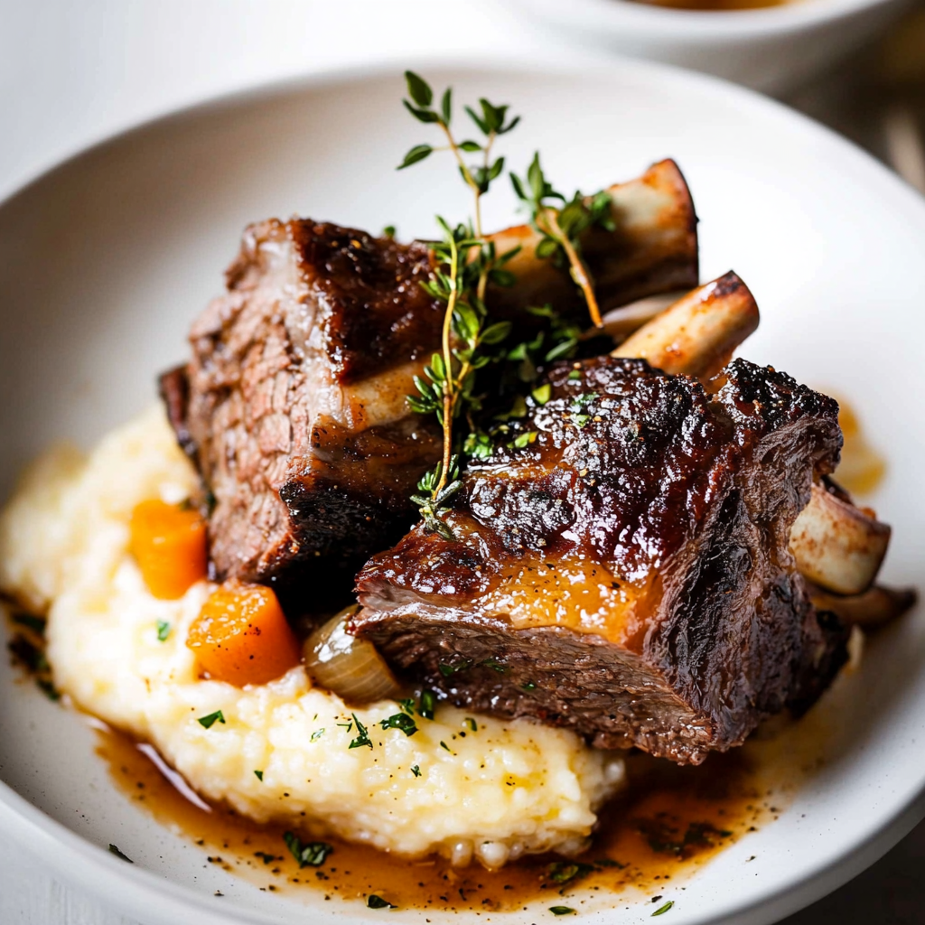 Creamy mashed potatoes or roasted vegetables pair beautifully with beef short ribs.