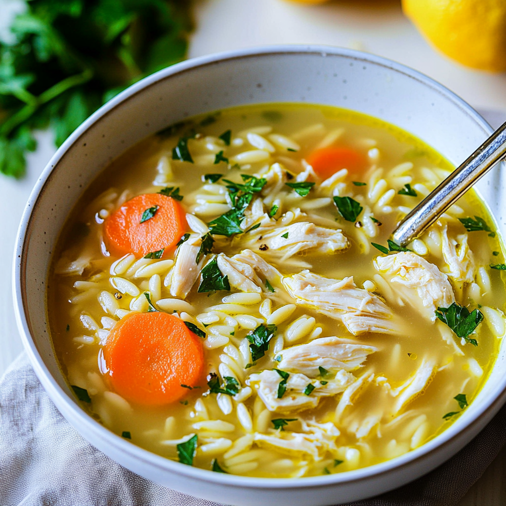 - This lemon chicken orzo soup is a comforting dish that warms your soul