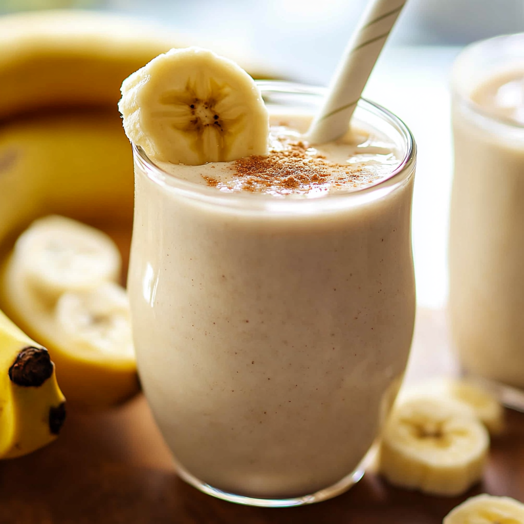 - Pour into glasses and serve immediately; garnish with banana slices or a sprinkle of cinnamon if desired.