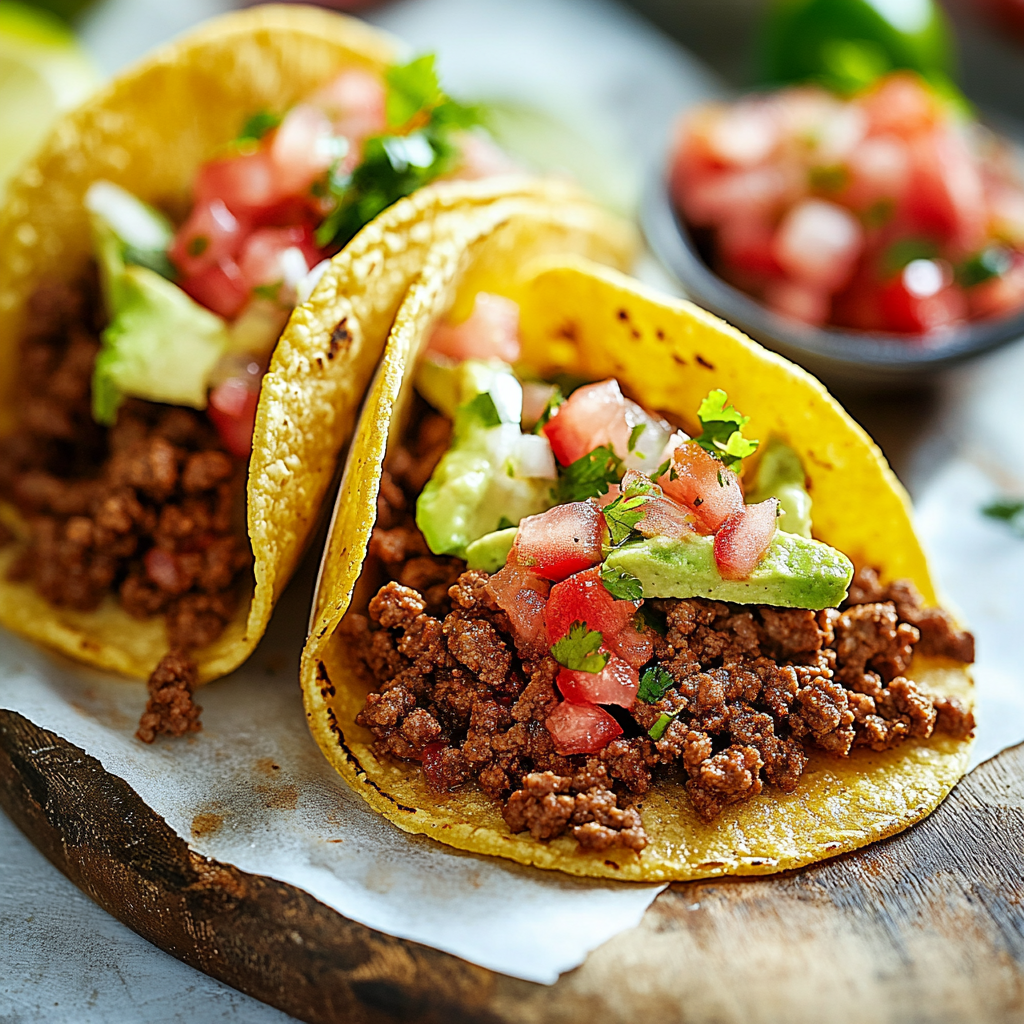 Ground Beef: Choose lean ground beef to keep your tacos flavorful without excess grease.