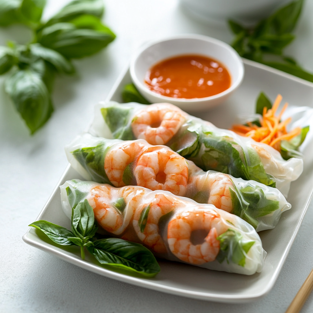 Serve with Dipping Sauce: Arrange your beautiful shrimp spring rolls on a platter alongside your favorite dipping sauce for an impressive presentation.