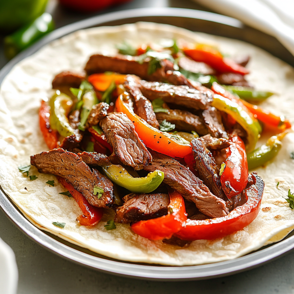 - Assemble Fajitas: Warm tortillas in a skillet or microwave. Fill each tortilla with beef slices and sautéed veggies. Squeeze fresh lime juice on top before folding.