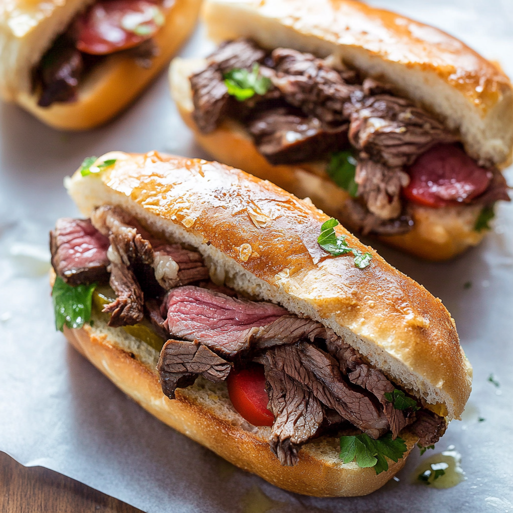 Indulge in the ultimate comfort food with these mouthwatering beef sandwiches. Tender, slow-cooked beef is nestled between soft rolls, creating a juicy experience that’s hard to resist. Whether it’s a family gathering or a cozy night in, these sandwiches are sure to impress with their rich flavors and satisfying textures. Customize with your favorite toppings for a personal touch that elevates each bite!