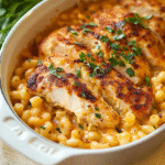 Imagine a creamy, cheesy concoction that envelopes tender chicken in a warm embrace, creating an irresistible dish that feels like a hug on a plate. That’s right, I’m talking about chicken and mac and cheese—comfort food at its finest. The velvety cheese sauce mingles with the pasta, while succulent pieces of chicken add a delightful twist to this classic favorite. It’s the kind of meal that makes you want to snuggle up on the couch with your loved ones and binge-watch your favorite series.