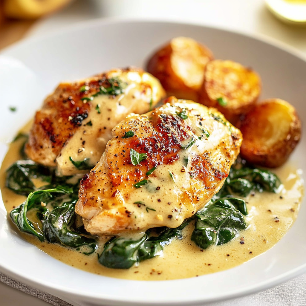 Indulge in this creamy chicken and spinach recipe that combines succulent boneless chicken breasts with fresh spinach in a rich, savory sauce. Perfect for weeknight dinners or impressing guests, this dish is a delightful harmony of flavors and textures. With its vibrant presentation and comforting essence, it’s bound to become a family favorite!