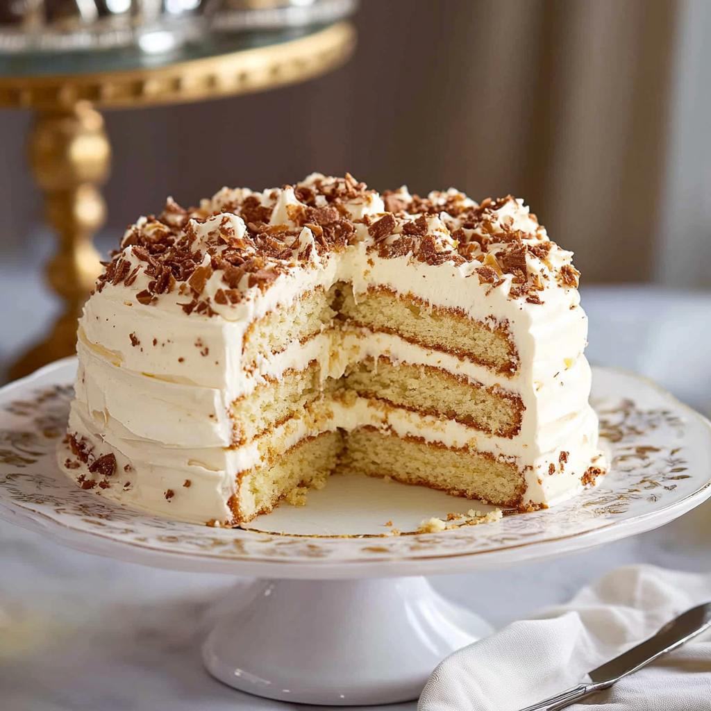 Indulge in the creamy delight of Italian cream cake, where fluffy vanilla layers meet rich cream cheese frosting and a sprinkle of toasted coconut. This indulgent dessert transforms any gathering into a festive celebration, leaving everyone craving more. Perfect for birthdays, anniversaries, or simply to brighten up a regular day, this easy-to-make recipe is sure to impress guests with its stunning presentation and delicious flavors.
