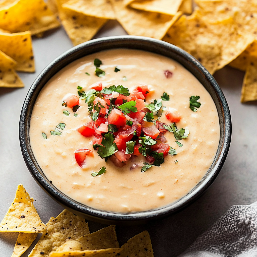 Garnish and Serve!: Transfer your luscious queso dip into a serving bowl, sprinkle with fresh cilantro, and serve hot with tortilla chips! Enjoy those satisfied faces as they dig in.