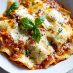Ravioli lasagna is a delightful twist on classic lasagna, combining layers of tender ravioli filled with creamy ricotta, rich meat sauce, and gooey cheese. This comforting dish is perfect for family dinners or cozy gatherings, offering a hearty meal that’s easy to prepare and sure to impress without the stress of traditional lasagna. Enjoy every cheesy bite as the flavors meld beautifully in this layered masterpiece, making it a favorite at any table.