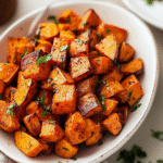 Spread on Baking Sheet: Arrange the seasoned sweet potato cubes in a single layer on a baking sheet lined with parchment paper. Spacing them out helps achieve that wonderful crispiness we all crave.