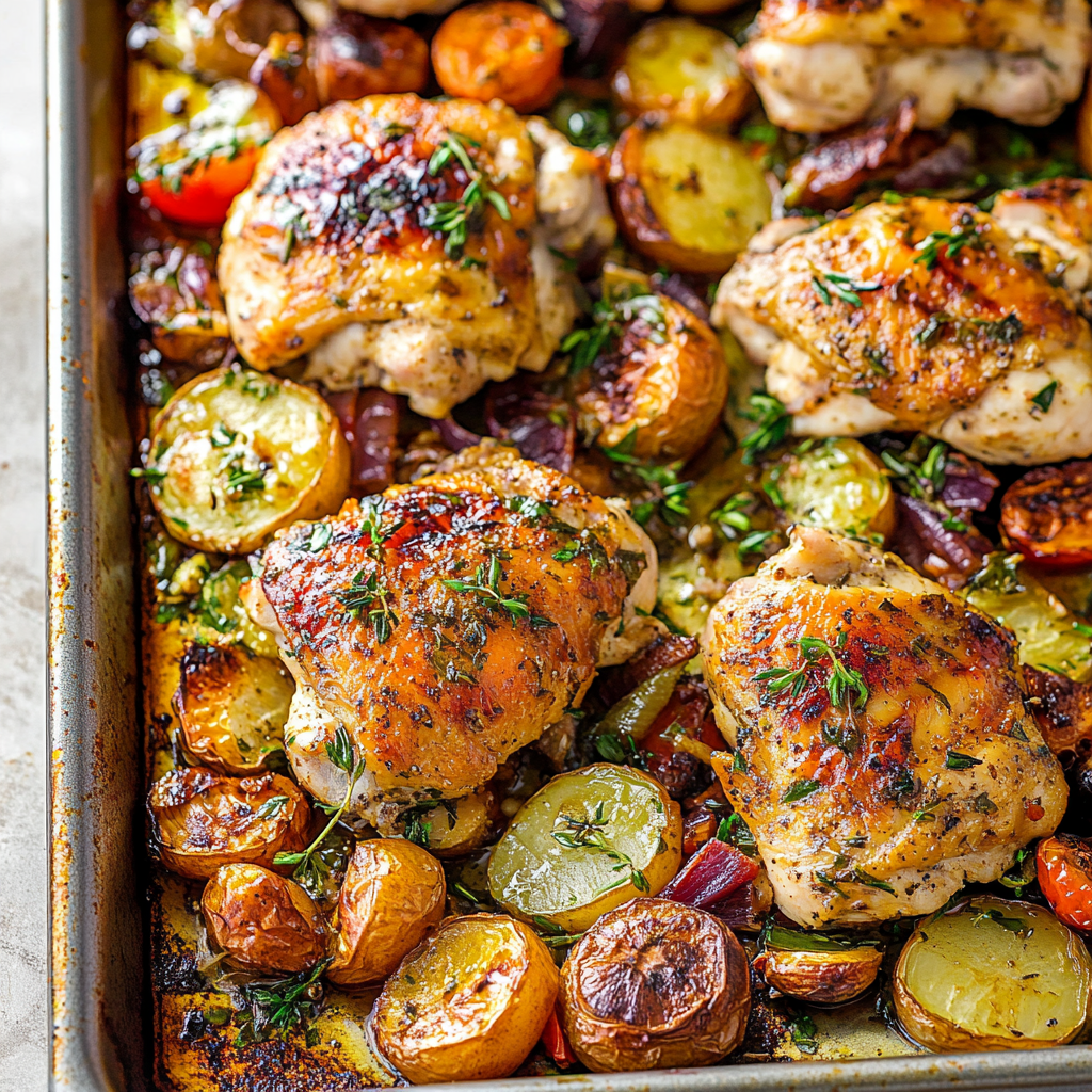 Experience the joy of a homemade meal with this easy and flavorful sheet pan chicken recipe. Succulent chicken breasts are roasted alongside vibrant vegetables, creating a harmonious blend of flavors and colors. Perfect for busy weeknights, this dish is not only visually stunning but also customizable to suit your taste preferences. Serve it up for family dinners or potlucks and enjoy the compliments that follow!