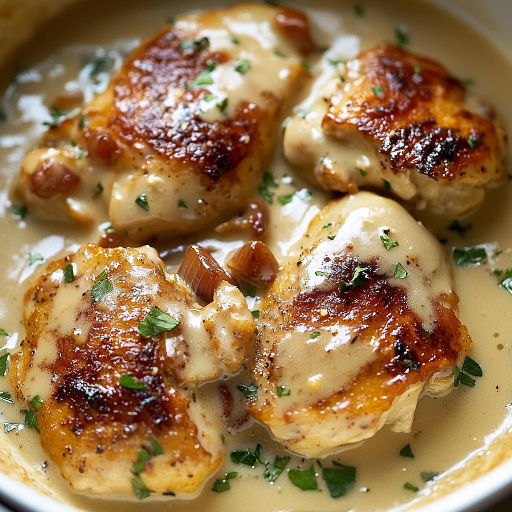 Indulge in the comforting flavors of smothered chicken, a delightful dish featuring tender chicken breasts enveloped in a rich, creamy sauce. This recipe combines simple ingredients with easy preparation, making it perfect for family dinners or casual gatherings. The inviting aroma and savory taste will have everyone coming back for seconds!