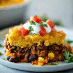 Now you’re ready to serve up slices of joy that will leave everyone smiling! Enjoy this tamale pie hot from the oven with toppings like sour cream or fresh cilantro.
