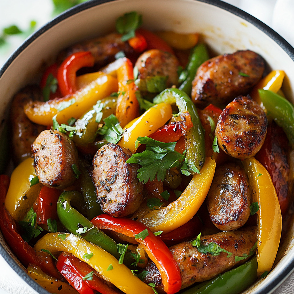 Sausage and peppers is a hearty, flavorful dish that combines juicy Italian sausages with sweet bell peppers and onions. This easy-to-make recipe brings vibrant colors and delicious aromas to your kitchen, perfect for family gatherings or cozy dinners at home. With minimal prep time and simple ingredients, you’ll create a mouthwatering meal in no time. Serve it over pasta or in sandwich rolls for a satisfying experience that everyone will love.