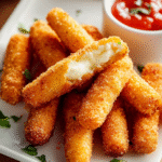Now you have perfectly crispy mozzarella sticks ready to enjoy! Serve them with marinara sauce or ranch dressing for dipping—you won’t regret it!