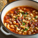 Pasta e fagioli soup is the ultimate comfort dish that warms both body and soul. This hearty Italian soup features tender pasta, creamy cannellini beans, and a medley of vibrant vegetables, all simmered in a savory broth infused with garlic and herbs. Perfect for chilly evenings or cozy gatherings, it’s a bowl of happiness that will delight your taste buds and bring warmth to your kitchen.