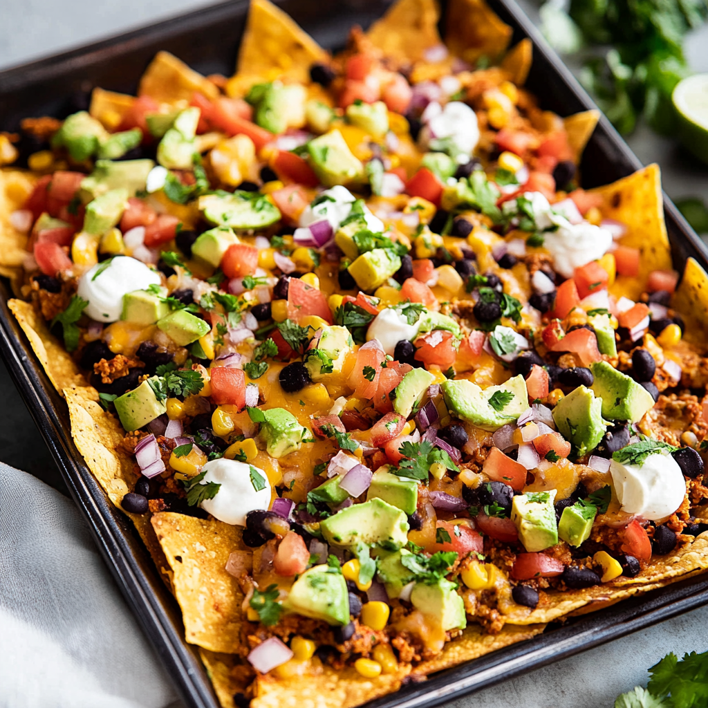 Treat yourself to a delightful platter of sheet pan nachos that combines crispy tortilla chips, gooey cheese, and all your favorite toppings. Perfect for game nights or cozy movie marathons, this easy-to-make dish promises to be a crowd-pleaser. With every bite, you’ll experience a burst of flavors from fresh jalapeños, creamy guacamole, and zesty salsa. Get ready to impress your family and friends with these cheesy delights!
