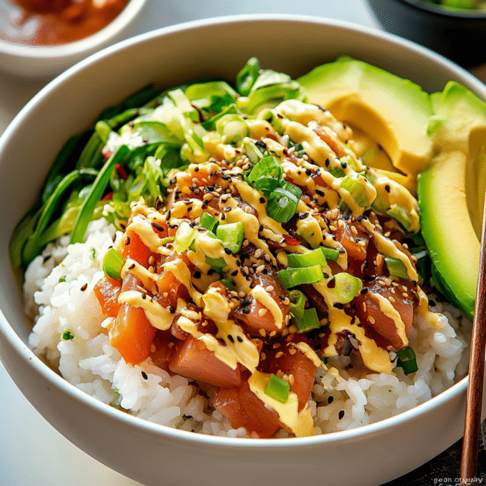 Experience a burst of flavors with this Spicy Tuna Rice Bowl, featuring tender sushi-grade tuna marinated in zesty sauces, served over fluffy short-grain rice. Topped with creamy avocado, crisp vegetables, and toasted sesame seeds, this dish is perfect for busy weeknights or impressing guests at dinner parties. Customize it with your favorite toppings for an unforgettable meal!